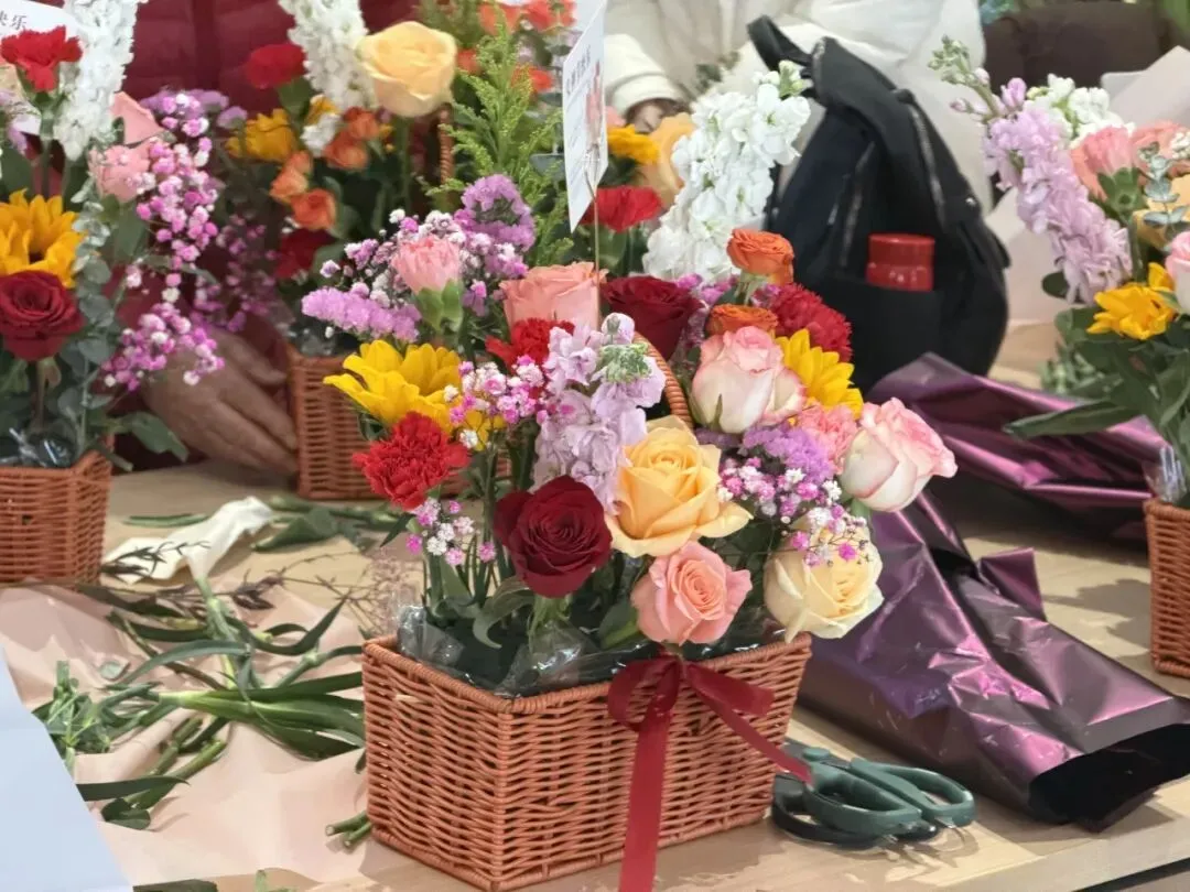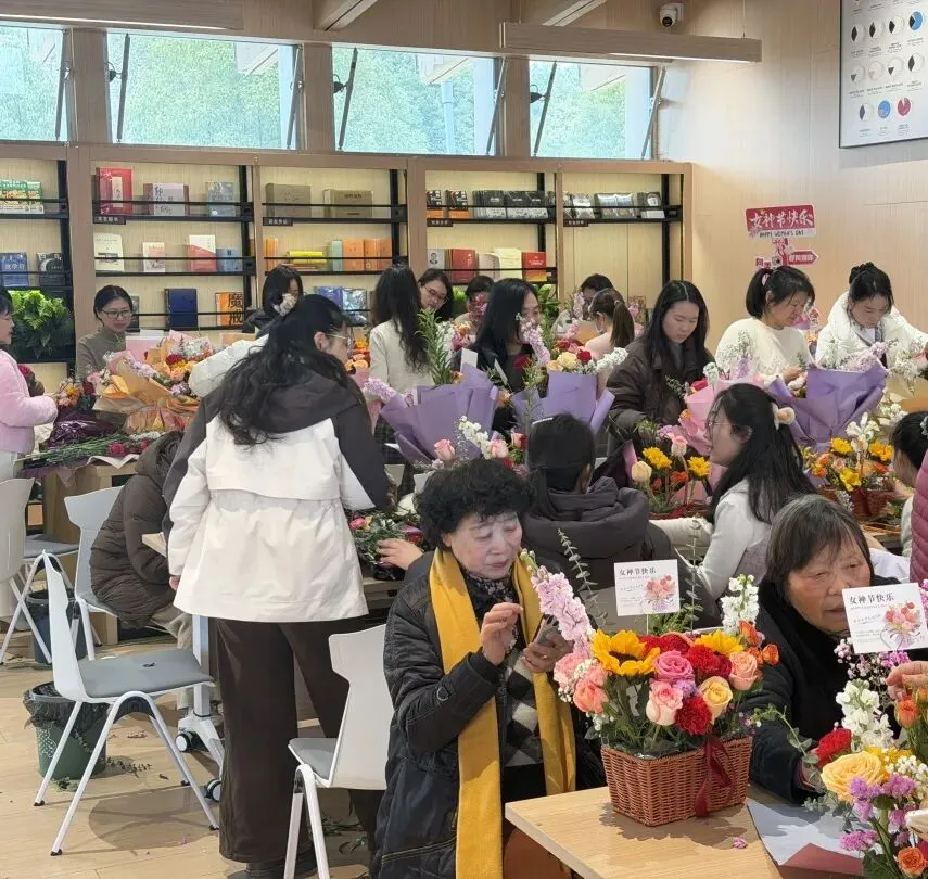 大木屋书吧内花香四溢,女神们相聚一堂。创意插花、手作鲜花饼,在花香与香甜中慢享春日时光。