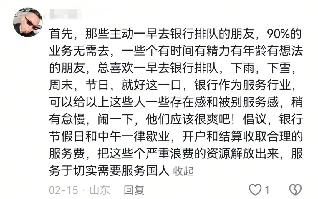 其实银行的服务真的这么糟糕吗?看看支某宝等等这些一个网点一个人也没有,结果没人抱怨。银行有智能机器和人为大家服务,结果还是觉得服务没有支某宝好!越有温度的服务别人越嫌弃,冰冷的服务反而很少有人说三道四!而且每家银行都是有手机银行APP的!