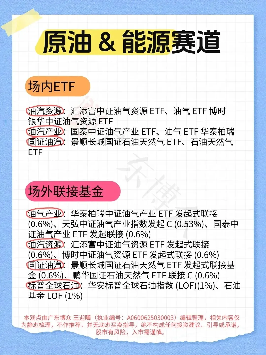 国证油汽:景顺长城国证石油天然气 ETF 发起式联接基金 (0.6%)、鹏华国证石油天然气 ETF 联接 C (0.6%)