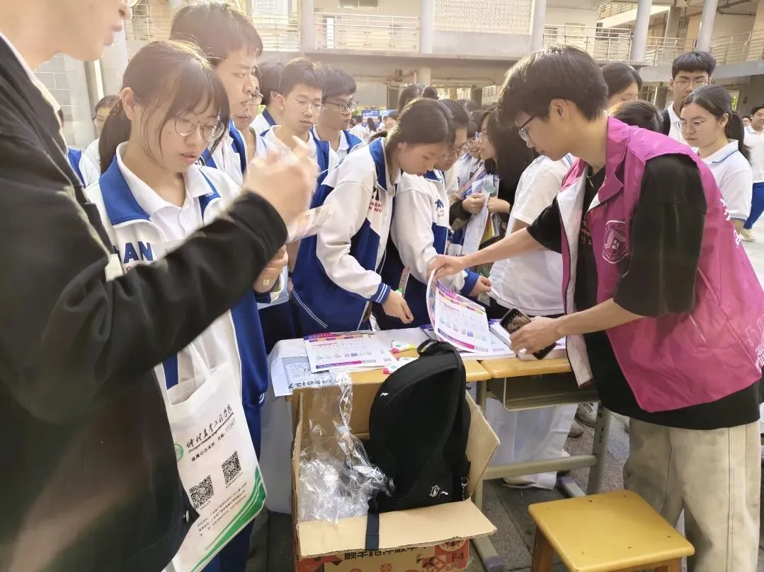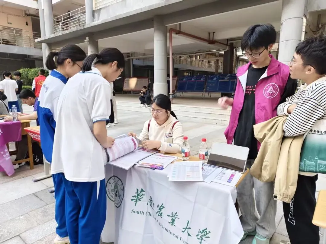活动现场,华农精心准备的校园文创礼品与宣传册深受欢迎,现场学子咨询踊跃,互动热烈而融洽。针对学弟学妹们关心的“高三备考压力大,如何平衡备考与目标规划”“华农各专业学习内容”“毕业生保研就业情况”等问题,团队成员们结合自身就读体验和生动的案例,进行了耐心细致的解答,既为学弟学妹答疑解惑,也让他们对大学生活有了更清晰的认知。