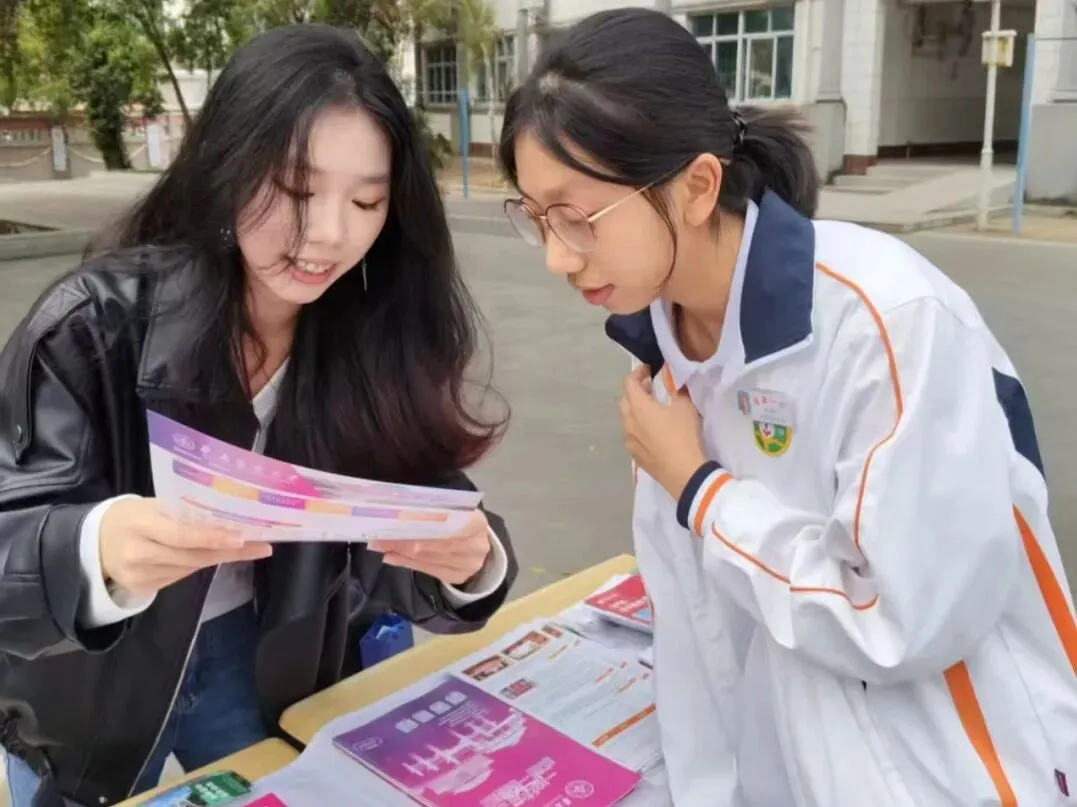 2月26日,庄雅曦作为招生宣传大使,与团队成员尤金萍一同回到母校湛江市第四中学,开展线下招生宣传活动,为高三学子搭建起了解大学、规划未来的沟通桥梁。