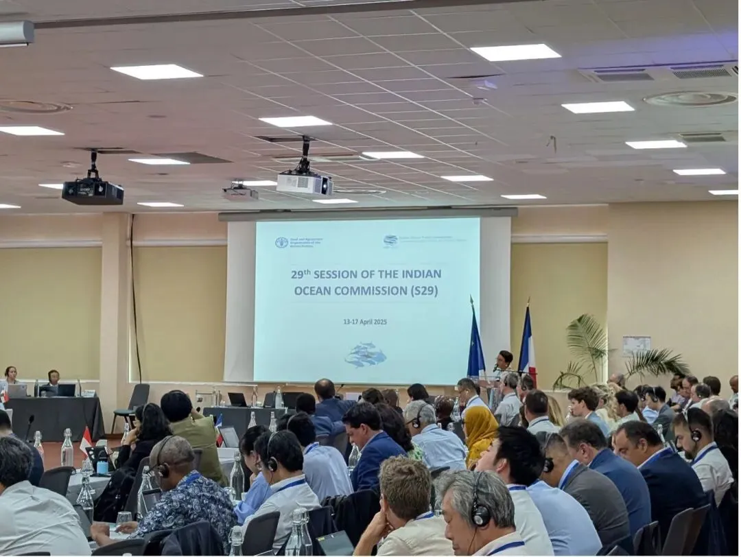 IOTC第29届年会官方照片(2025年4月会议现场,投影屏显示“S29”字样,真实记录多国代表讨论)。