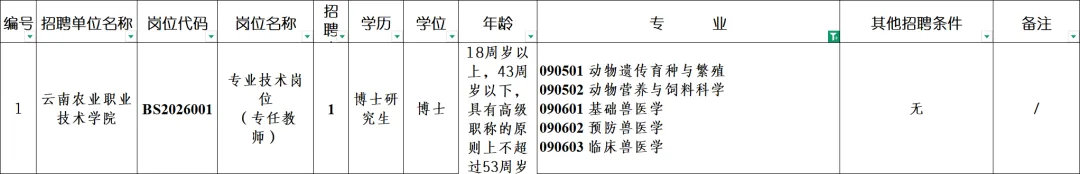 【云南】云南农业职业技术学院招聘兽医、畜牧博士,纳入事业单位编制内管理