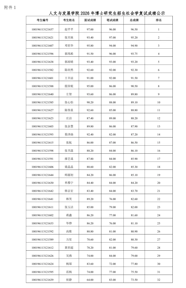 >社会学博士招生 | 中国农业大学人文与发展学院2026年博士研究生招生社会学复试成绩公示