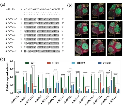 研究发现,miR156a在感病猕猴桃品种中的表达量显著高于抗病品种,其表达水平与品种抗性呈负相关,提示其可作为抗病育种的重要候选靶标。通过过表达和短串联靶标模拟(STTM)抑制技术,研究证实miR156a通过靶向14个SPL转录因子,负向调控猕猴桃对丁香假单胞杆菌猕猴桃致病变种(Psa)引起的溃疡病的抗性。进一步的机制解析表明,AcSPL6c和AcSPL14c是该调控通路中关键的免疫正调控因子。miR156a-SPL模块通过调控水杨酸(SA)和茉莉酸(JA)的激素信号重编程,精细调控宿主免疫应答,从而实现对溃疡病的抗性调节。