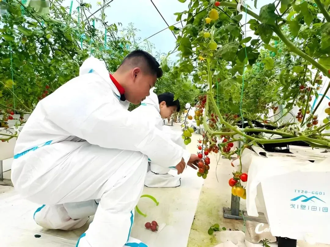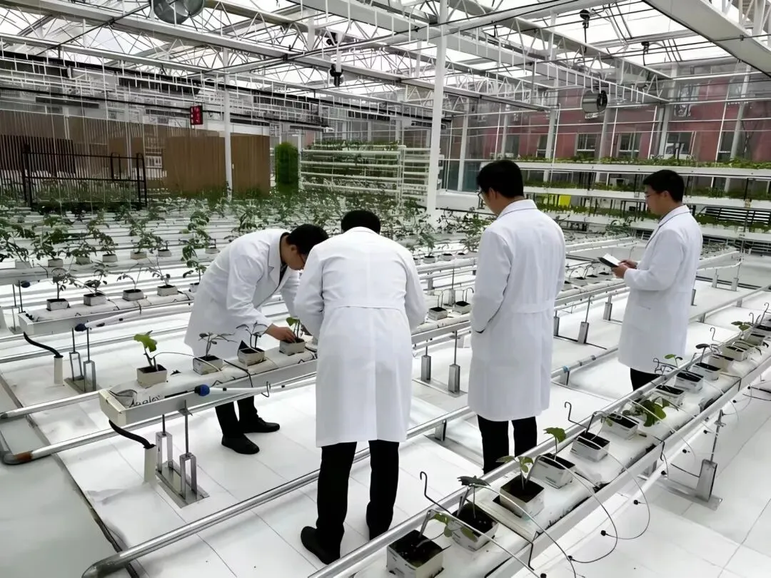 服务队成员实地观摩智能温室、无土栽培技术,参与水肥一体化操作,与园区技术人员交流智慧农业应用难点,了解到智慧农业面临农业环境的复杂性、技术的适用性等问题。