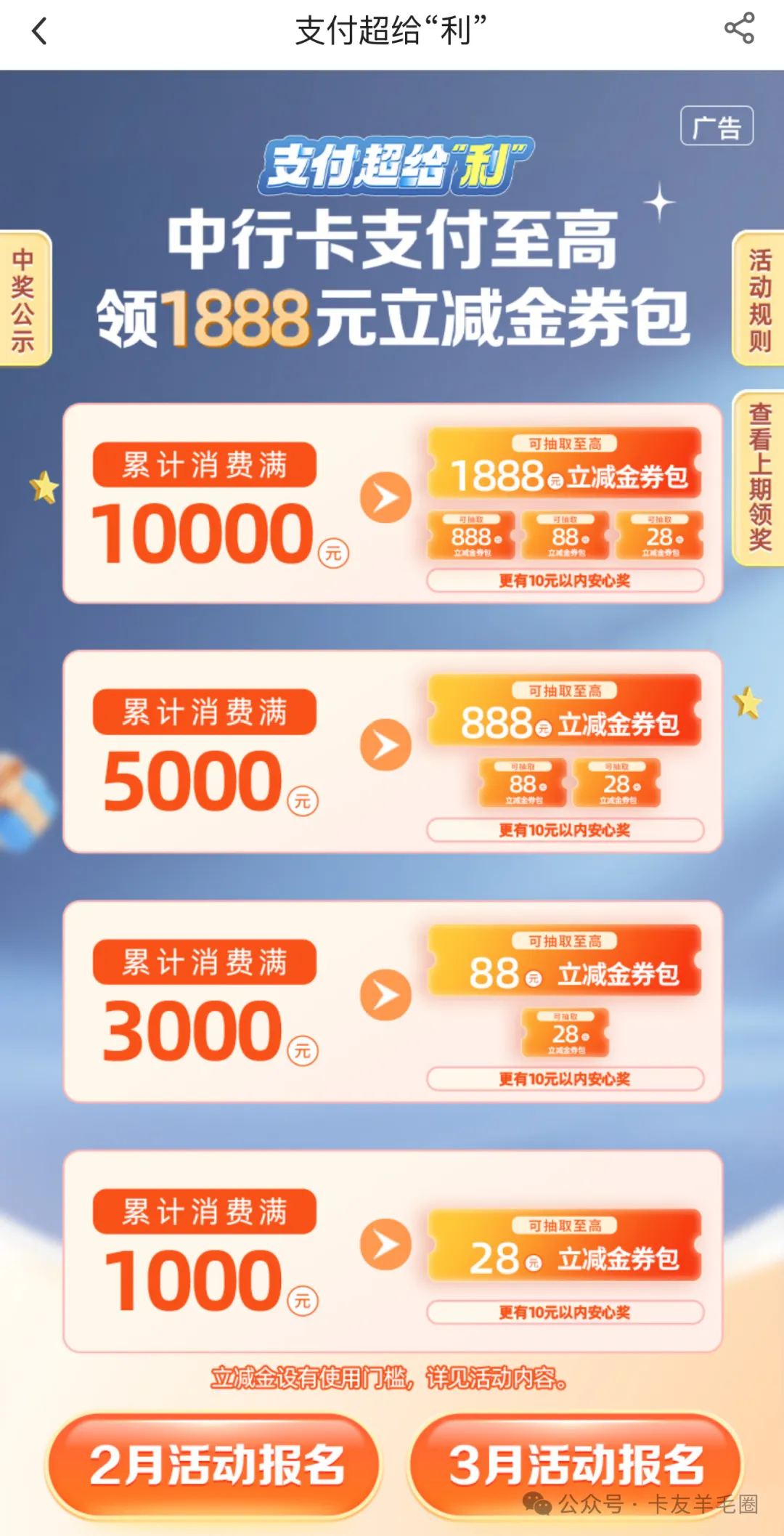 活动对象:农行信用卡主卡持卡人参与