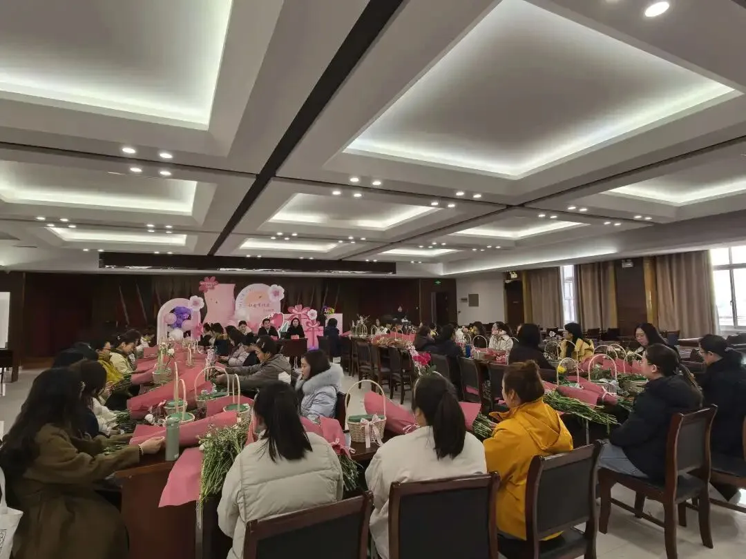 农业园区以 “指尖生花颂巾帼 聚力扬帆促振兴” 为主题开展插花活动,园区女职工欢聚一堂,共赴春日花艺之约。活动现场花香萦绕,整齐摆放着玫瑰、康乃馨、满天星等各色花材。园区管委会主任在致辞中,向扎根基层、坚守岗位的女职工致以节日问候,肯定了她们为园区高质量发展注入的强劲巾帼力量,希望大家在花艺创作中放松身心、凝聚合力。