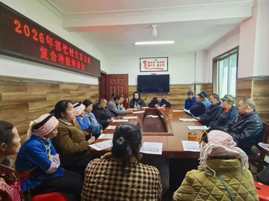 种植业发展中心到毛尖镇摆忙村开展大豆玉米带状复合种植技术培训及示范点补贴政策宣传;到双堡村对接并指导大豆玉米带状复合种植示范点建设进度。