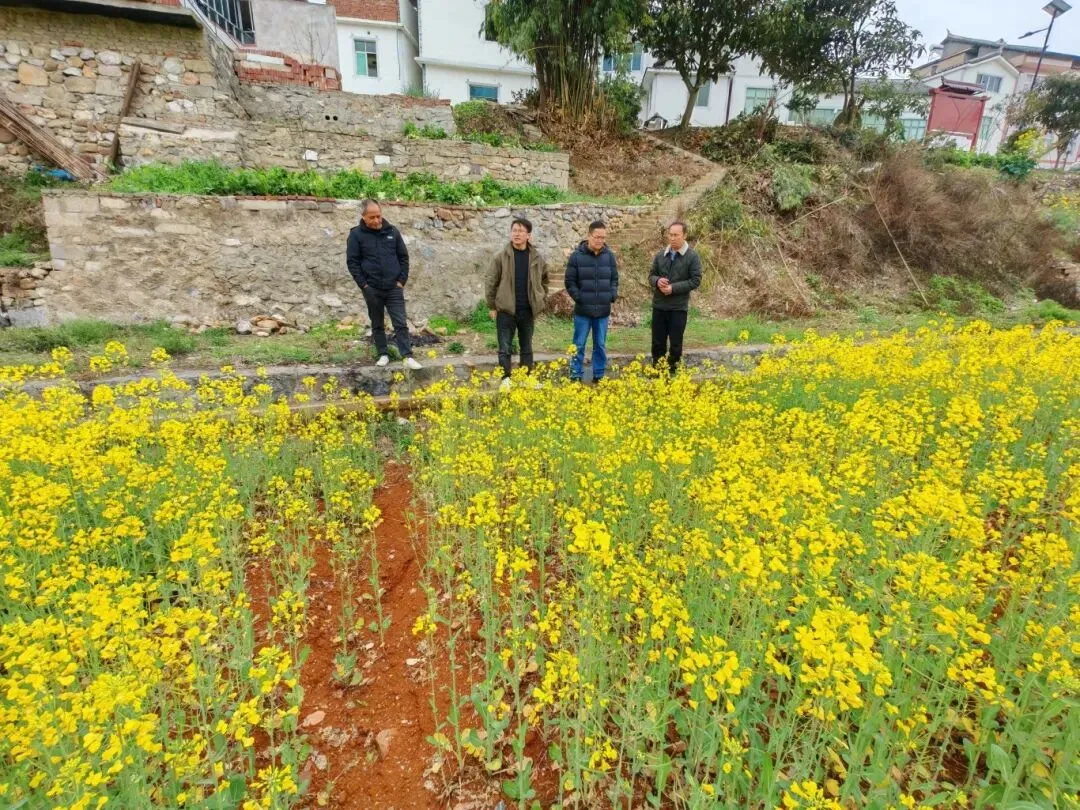 中国农科院油料所研究员秦璐一行到小围寨街道马尾村,墨冲镇沙寨坝区,平浪镇凯口坝区调研指导油菜长势及病虫害情况,市人民政府副市长张建,市农业农村局党组书记、局长蔡莉玲陪同。