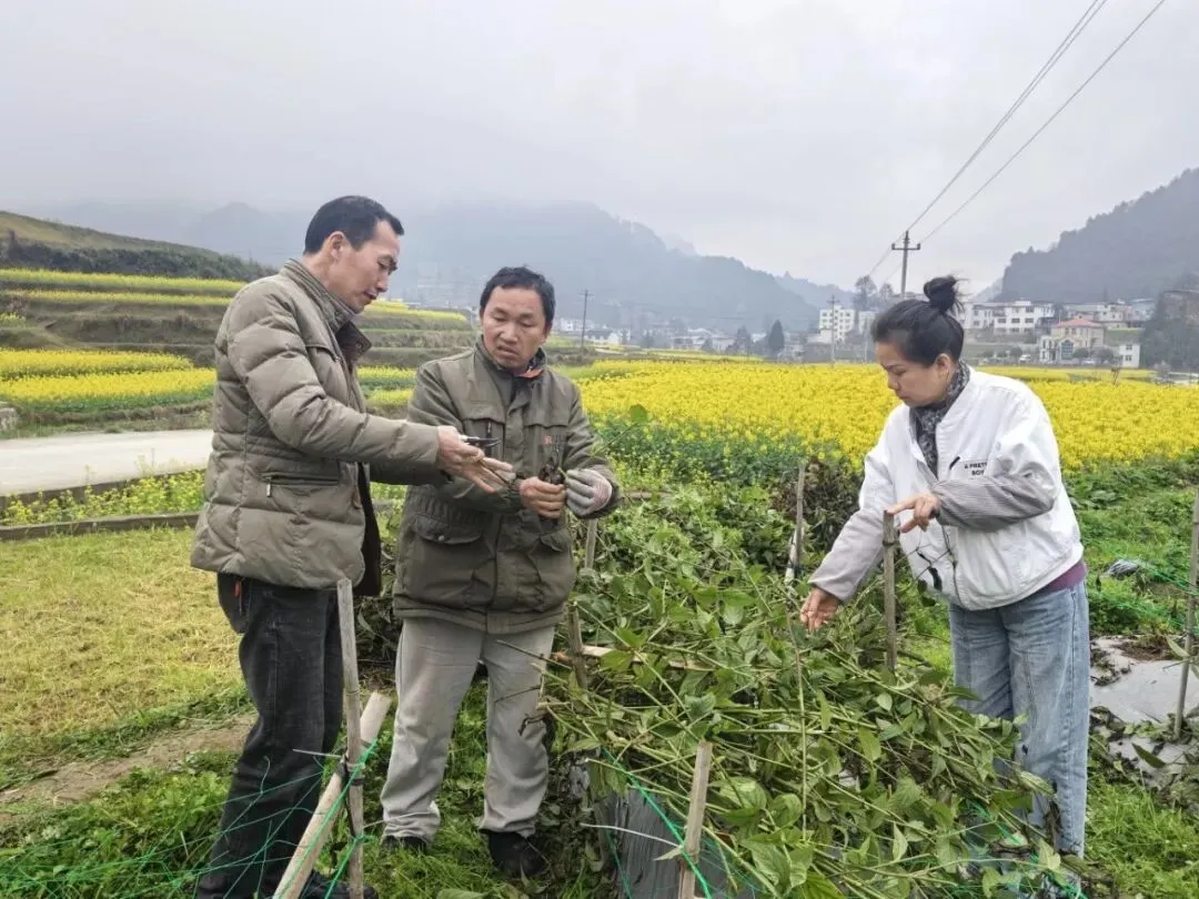 种植业发展中心到匀东镇、归兰乡对接大豆玉米带状复合种植示范点落实情况,并到奉合村开展红果参扦插培训。