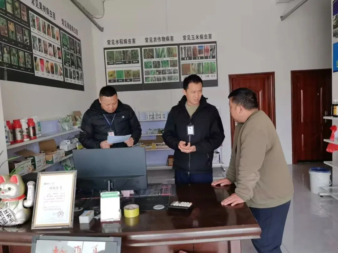 农业综合行政执法大队到绿茵湖街道开展农资市场检查。