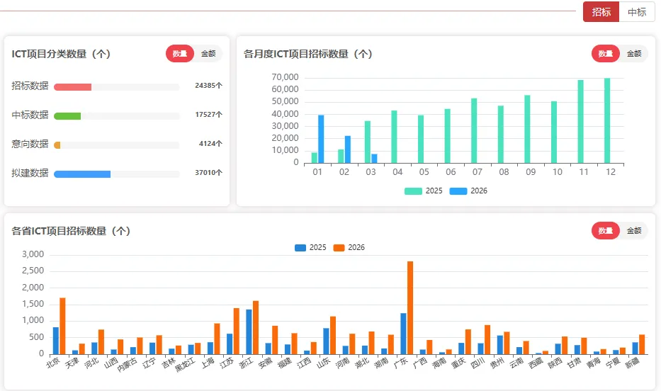 【ICT标局】平台为用户提供招标、中标、标前预告、拟建项目以及商机预测信息的筛选、查看及导出。重大项目提前预见,市场趋势有据可循!