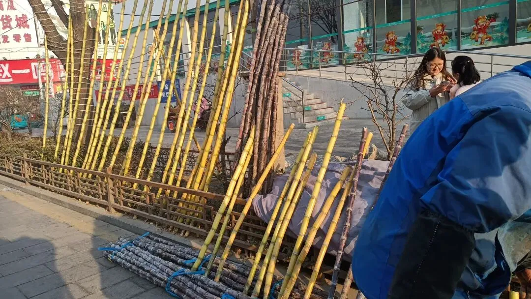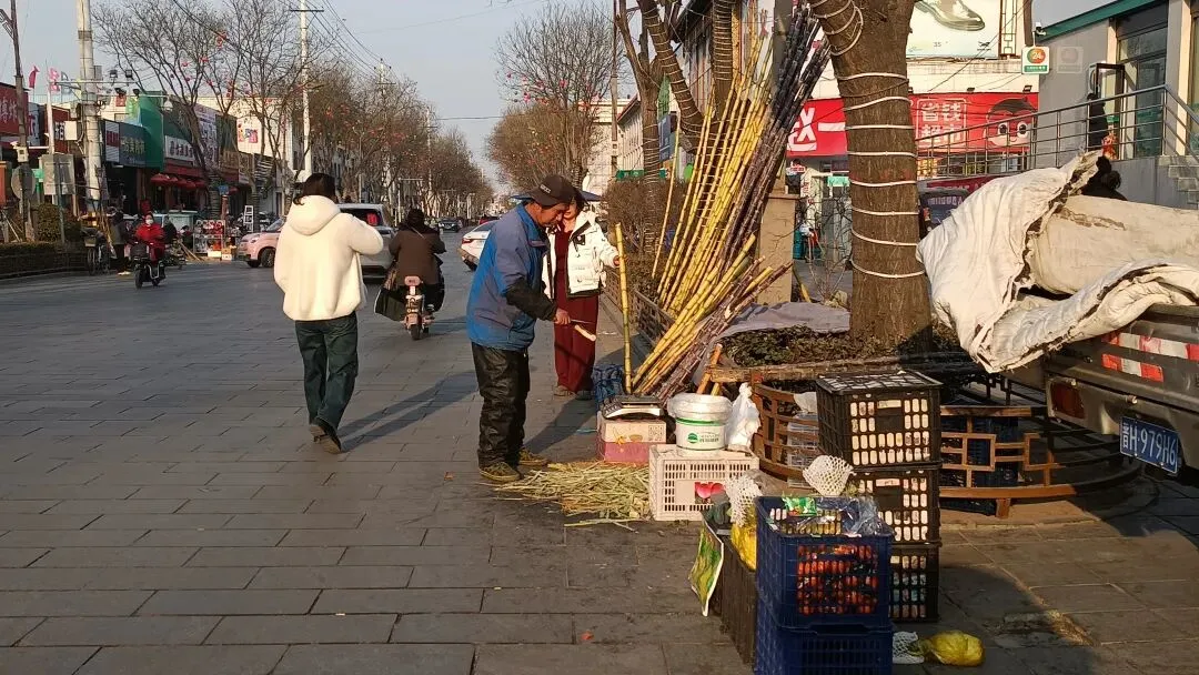 下午上了趟街,走到小南街路口的农业银行门前时,一连串的吆喝声瞬间钻进耳朵,电动车不由自主的停在路边欣赏起这个卖甘蔗的小摊。
