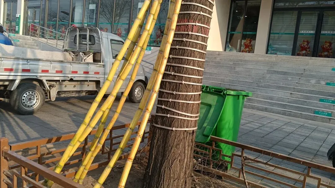 摊位左边的黄金甘蔗像一杆杆长枪和一柄柄短剑,整齐的排列在绿化带的里外,右边的甘蔗犹如抱团取暖似的围在树前,两堆甘蔗中间摆放着几筐砂糖橘,削了皮的菠萝套上薄如蝉翼的黄色塑料袋,更让这抹黄色亮堂了不少。