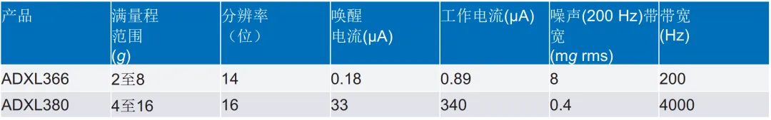 表1 MEMS加速度计对比:超低功耗 vs. 超低噪声