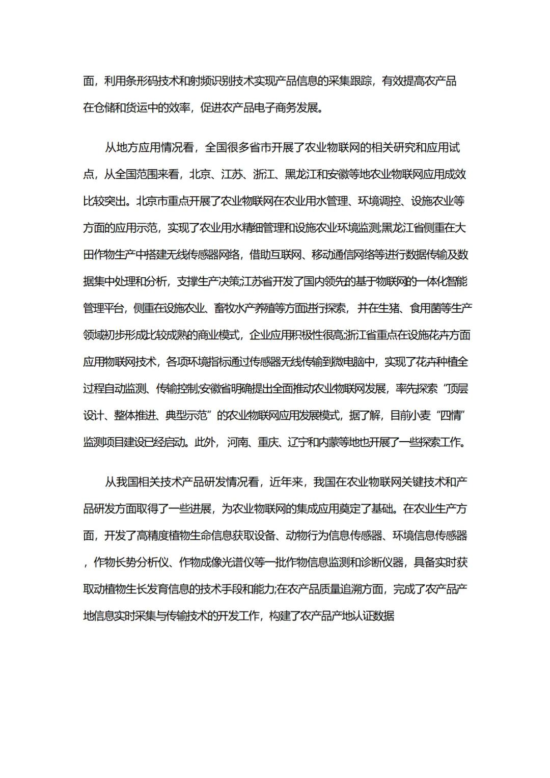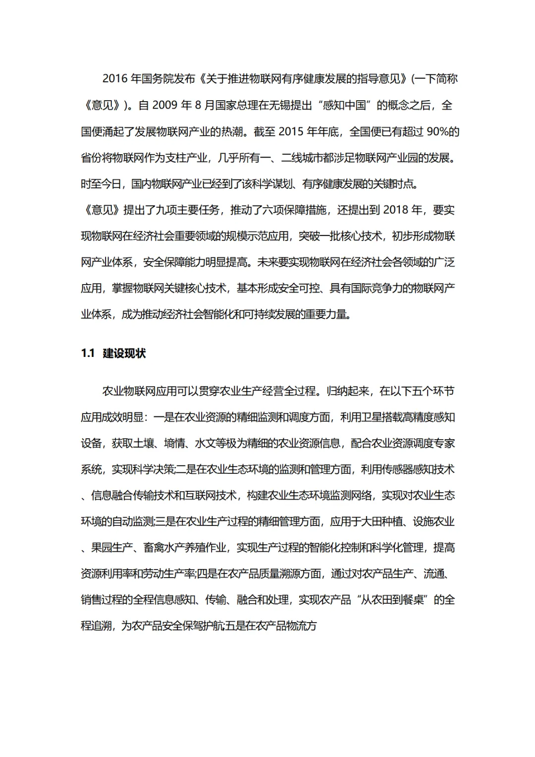 方案建设背景依托国家战略性新兴产业与物联网发展规划,目前农业物联网已在资源监测、生态管理、生产精细管控、质量溯源、物流电商五大环节落地,北京、江苏等省市形成试点成效,技术研发也在传感器、溯源终端等方面取得突破,但行业仍存在商业模式不足、高端人才缺失等问题。