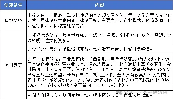 注:具体可参见《农业农村部关于开展全国休闲农业重点县建设的通知》(2021年)和《农业农村部办公厅关于开展2023年全国休闲农业重点县申报和监测工作的通知》。