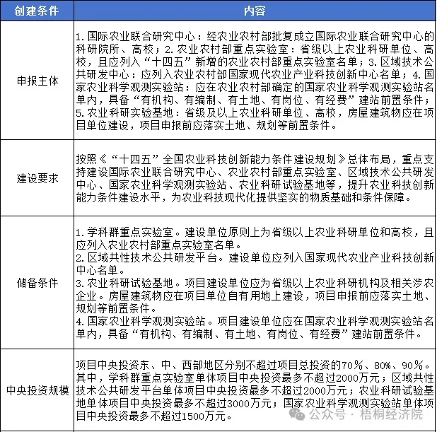 具体创建条件可参照科技部农业部水利部国家林业局中国科学院中国农业银行关于印发《国家农业料技园区发展规划(2018一2025年)》的通知》。