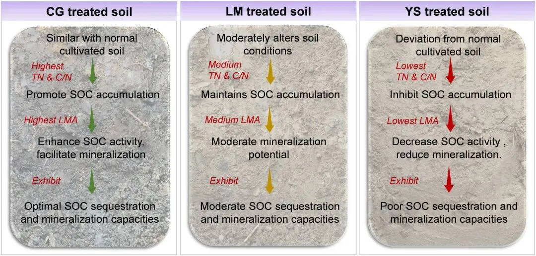 图8. 土壤有机碳封存与矿化不同处理方法的示意图。