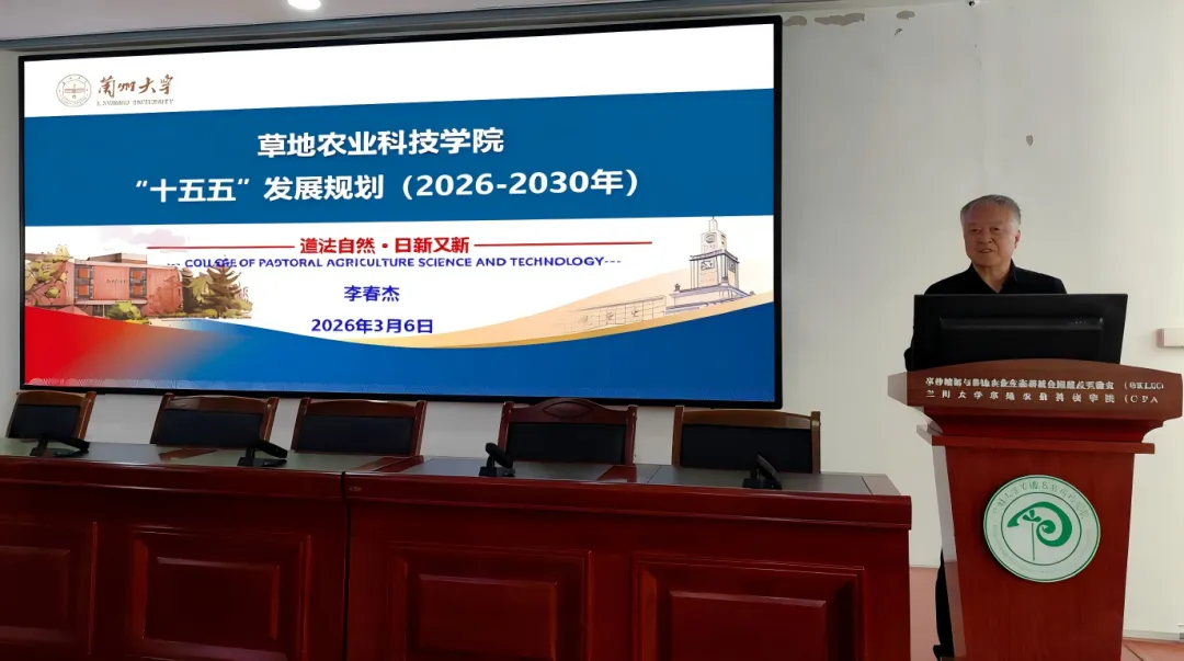 李春杰院长传达了杨勇平校长在全校工作会议上的讲话精神。他强调,全院上下要认真学习领会杨校长讲话精神,主动对标一流、找准差距、明确方向,切实增强“入列”意识,推动学院各项工作在“十五五”开局之年取得新突破。随后,李春杰对学院“十五五”发展规划及2026年重点工作进行部署,围绕“十四五”取得成效、“十五五”发展目标与任务举措等方面进行了全面阐述。他指出,未来五年,学院将围绕建成国际领先的“四中心一基地”总体目标,深入实施“六大工程”,在人才培养、师资建设、科学研究、社会服务、文化传承、国际合作等方面持续发力,力争在育人根本、科研创新、成果转化等方面实现更大突破,推动草学学科稳固保持国内领先、国际一流地位,进一步提升我们的国际影响力和话语权。