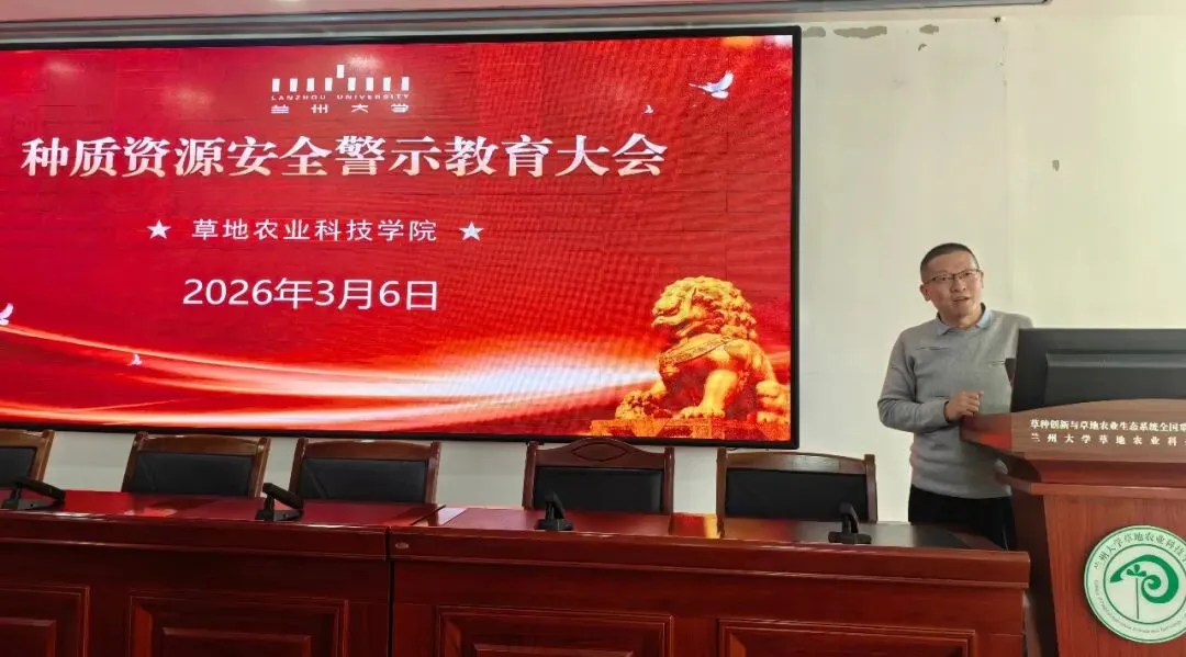 刘志鹏副院长作种质资源安全警示教育报告。他强调,草种质资源是国家战略资源,必须增强安全意识、完善管理制度、强化责任落实,确保种质资源安全可控、可持续利用。