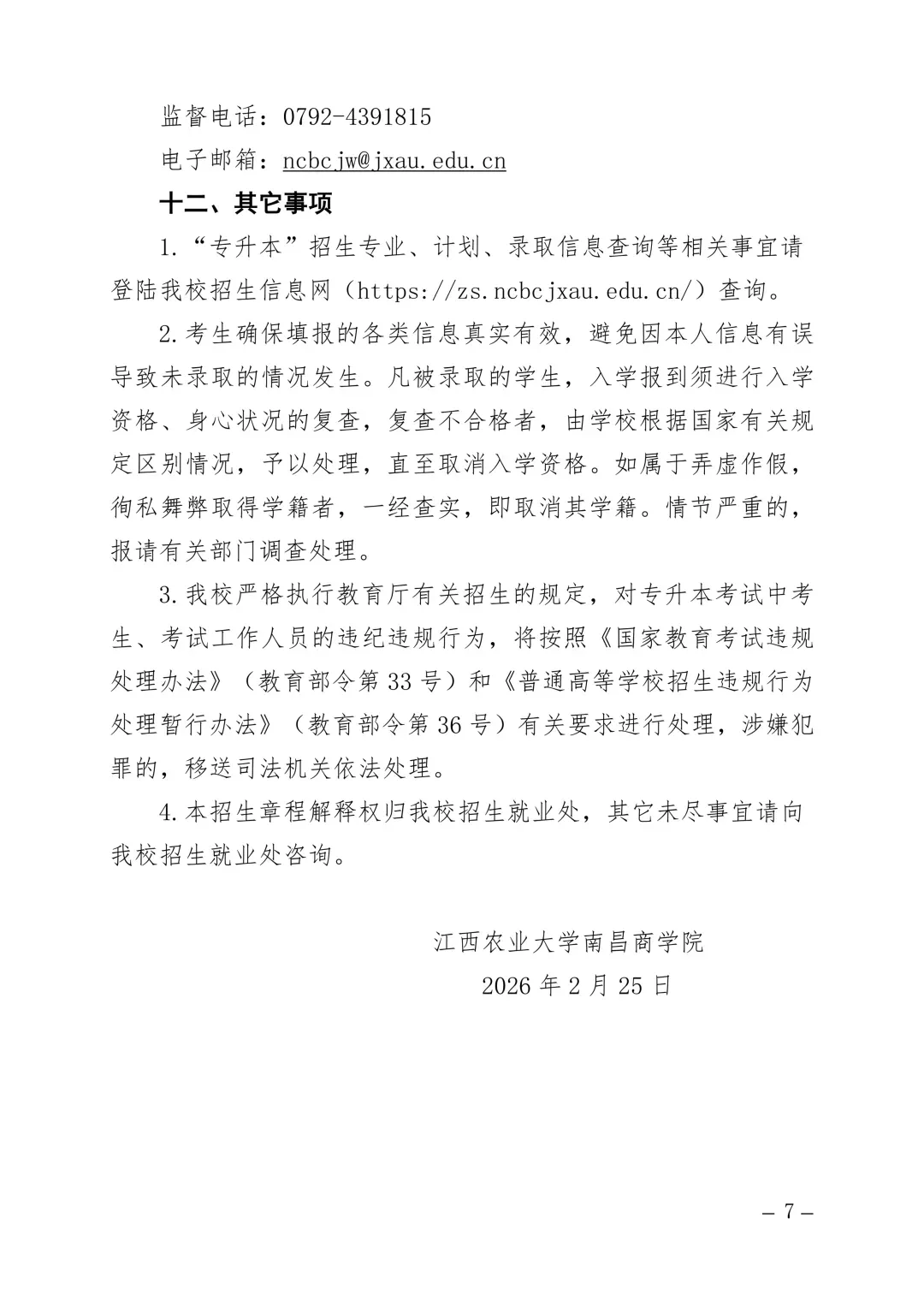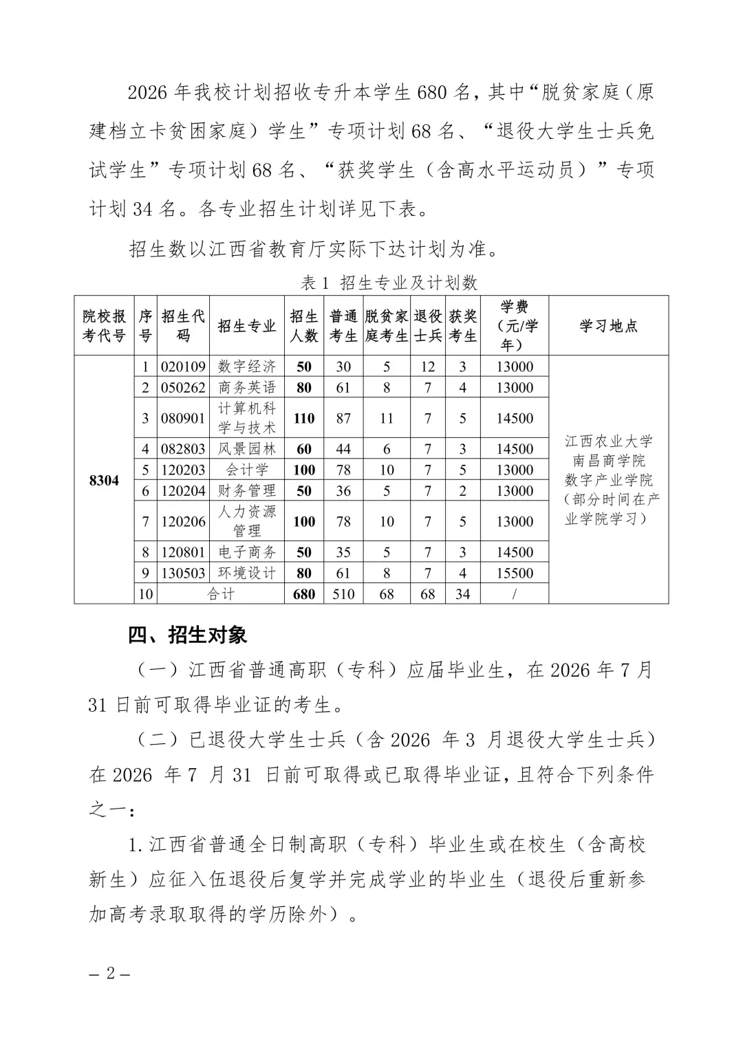 >招680人!江西农业大学南昌商学院 2026 年专升本招生简章