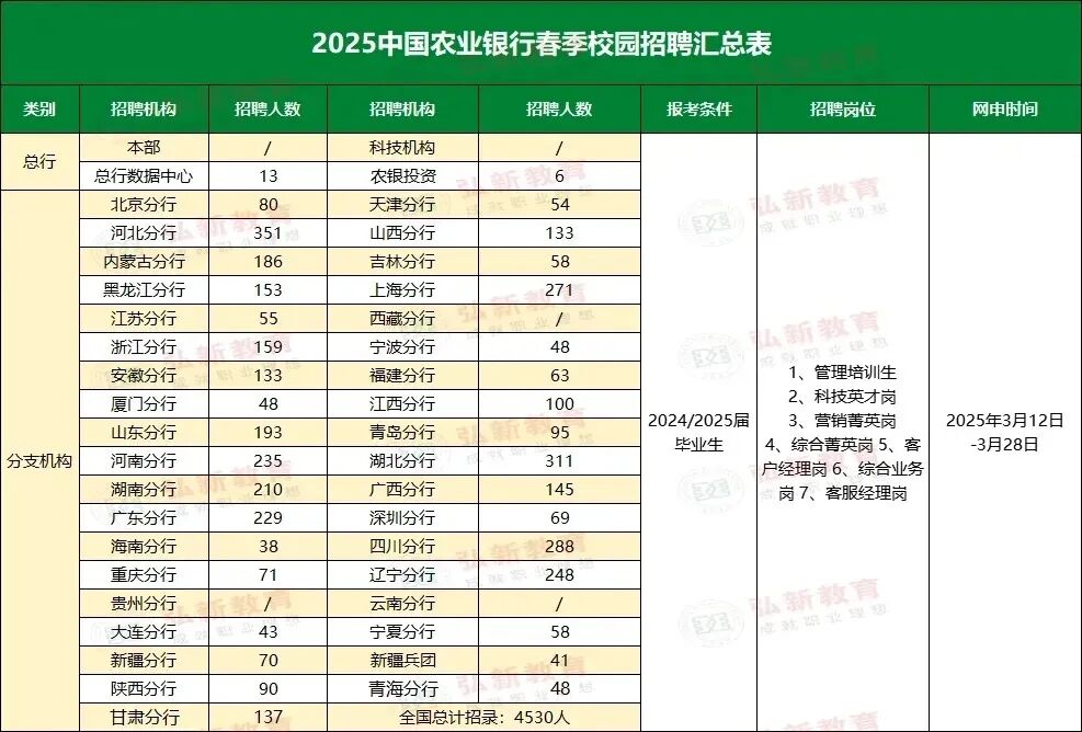 2026 年银行春季招聘即将进入关键期,作为国有大行之一的农业银行,每年春招都是应届生关注的热门选择。