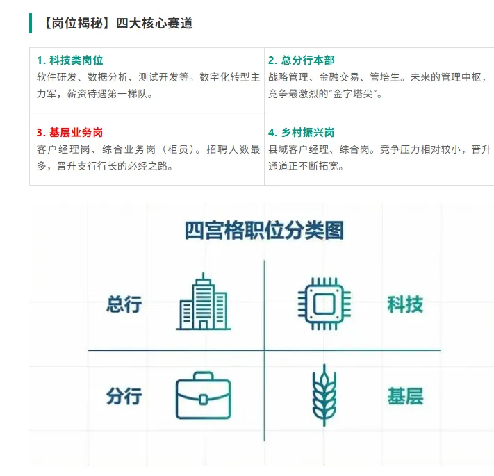 岗位多、覆盖广、稳定性强,很多岗位专业不限、本科可报,适合想进国有银行的同学提前准备。
