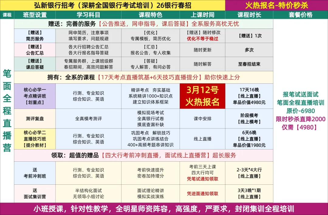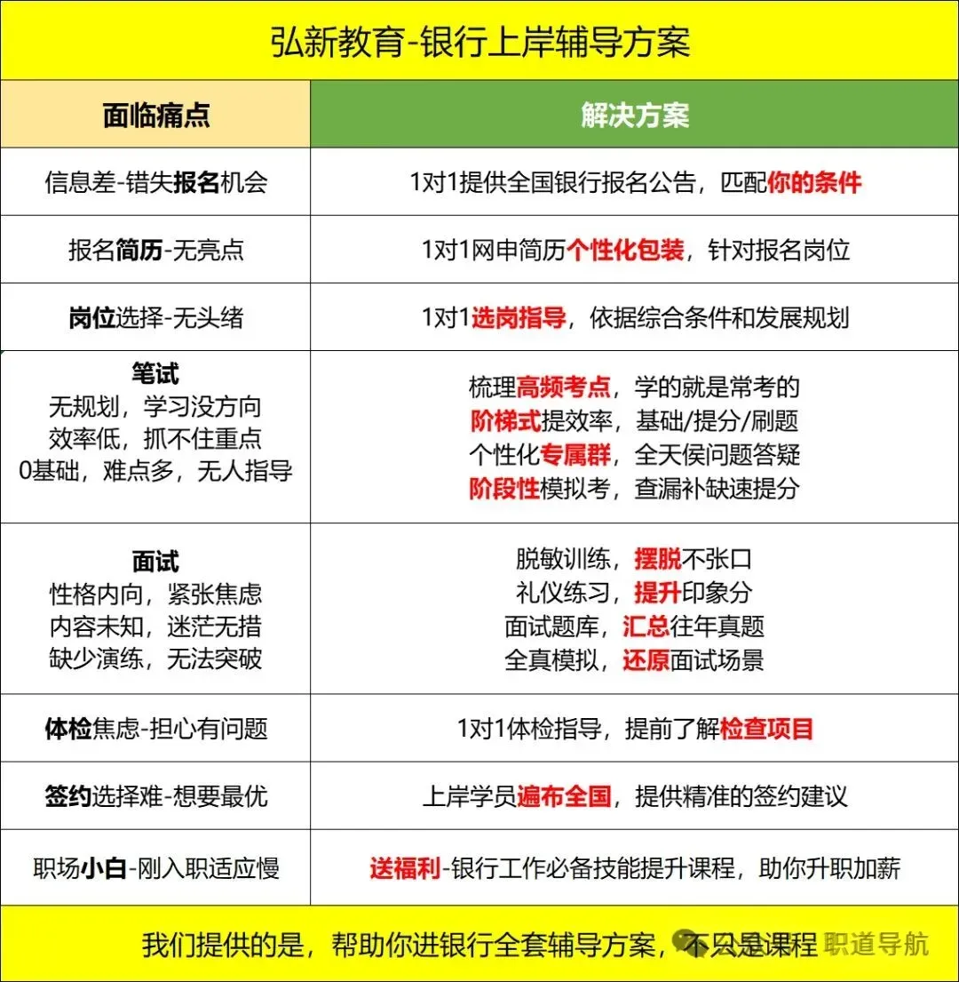春招节奏快,网申、笔试、面试环环相扣,孩子自己备考容易抓不住重点。弘新教育深耕全国银行招聘考试,是行业老牌子,家长完全可以放心: