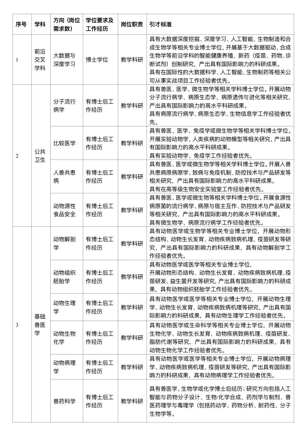 一、招聘学科领域