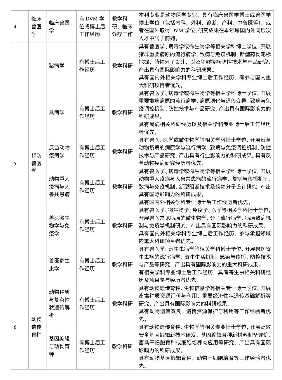 畜牧学、兽医学、生物学等相关学科领域。