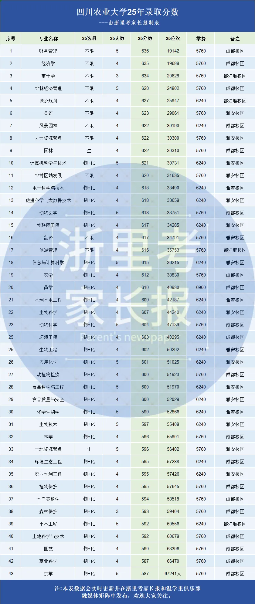植物学、动物学、生理学、水生生物学、微生物学、神经生物学、遗传学、发育生物学、细胞生物学、生物化学与分子生物学、生物物理学、作物遗传育种、作物栽培与耕作学、果树学、蔬菜学、茶学、土壤学、植物营养学、植物病理学、农业昆虫与病虫害防治、农药学、动物遗传育种与繁殖、动物营养与饲料科学、特种经济动物科学、基础兽医学、预防兽医学、临床兽医学、林木遗传育种、森林培育、森林保护学、森林经理学、野生动植物保护与利用、园林植物与观赏园艺、水土保持与荒漠化防治、草学、农业经济管理、林业经济管理、药用植物学、烟草学、园艺产品采后科学、畜产品质量与安全、生物资源化学、农村与区域发展、农业环境保护、森林生态学、土地资源学、资源经济与土地管理、动物生产学、作物生产装备及其智能化、动物药学、农林资源与环境管理、农业 |