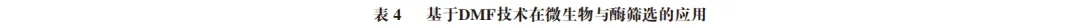 DMF系统以其单细胞分辨率的精准操控能力,在微生物组研究和工业生物技术领域实现了双重突破。在单细胞基因组解析方面,Microbe-Seq技术通过微流控液滴封装单细胞,结合高通量条形码标记与全基因组扩增,不仅成功重建了76 种肠道菌的完整基因组,突破了传统宏基因组分析的物种混杂难题,更首次在单细胞层面揭示了同类细菌间高频水平基因转移的动态网络,为微生物群落的功能互作研究提供了全新视角。而在工业应用领域,该技术通过“精准封装-高通量得选”的技术范式革新了功能菌株与酶分子的得选体系,针对工业菌株选育,研究人员将甲基磺酸乙酯(EMS)诱变与液滴封装技术结合,从海量突变体中得选出核黄素产量激增2 000 倍的乳酸菌突变株,并创新性地集成SERS和光镊技术,实现微液滴内代谢产物的原位检测与目标菌株实时分选,使得选效率提升成本降低;在酶分子定向进化方向,Agresti等构建的“诱变-封装-得选”闭环系统通过错误倾向PCR(epPCR)诱变酵母文库,利用液滴微反应器的并行化优势,从数百万变异体中高效得选出催化速率提升10 倍的HRP突变体。这种单细胞精度与高通量得选的深度融合,既推动了微生物基因转移机制的深度解析,又为工业菌株智能化选育和酶分子人工进化构筑了高效技术平台,彰显了其在基础研究与产业应用中的双重价值(表4)。