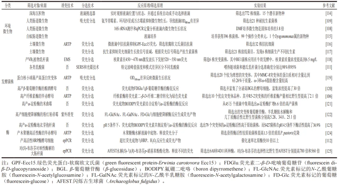 对于低丰度微生物得选,DMF技术展现出传统方法难以企及的富集能力。液滴封装形成的独立微环境可有效分离在传统培养中难以被发现的罕见微生物(Apilactobacillus kunkeei、Lactobacillus helsingborgensis、Gilliamella apicola)(相对丰度<0.01%)。Villa等发现液滴培养的肠道微生物中,有204 种能分解某些多糖,其中94 种是液滴培养中所独有的。此外,利用DMF平台封装粪便微生物,结果发现微生物种群丰富度显著提高,并得选出耐抗生素的微生物,为治疗肠道微生物感染提供了新方法。