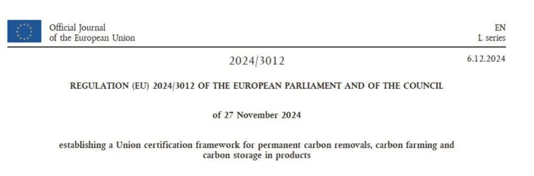 欧盟碳去除和碳农业法规(Regulation on Carbon Removal and Carbon Farming,(EU)2024/3012,简称CRCF),是欧盟首个针对碳去除和碳农业活动的统一自愿认证框架,以验证欧盟范围内的高质量碳去除和碳农业活动。其核心是通过明确的标准和规则,确保环境诚信,防止“漂绿”行为,支持欧盟实现2030年气候中期目标和2050年气候碳中和目标。