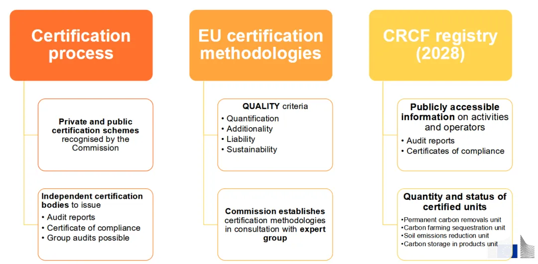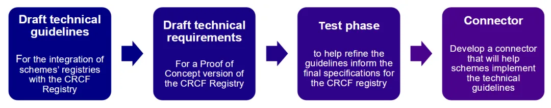 CRCF计划在2028年之前建立一个统一的集中注册平台,用于公开所有认证信息和追踪认证用户,以防止重复计算并确保整个体系的透明度,目前用于开发技术指南的试点项目已经启动。