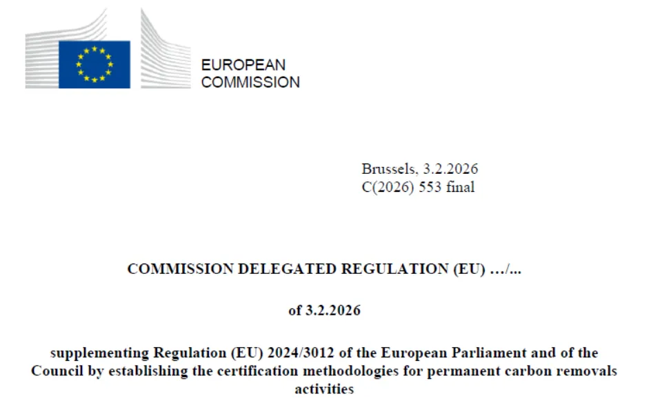 2026年2月3日,欧盟委员会已经通过永久性碳去除授权法案,为不同类型的碳去除活动制定具体的认证方法论。首批针对永久性碳去除技术的方法论涵盖DACCS(直接碳捕捉和碳储存)、BECCS(生物排放碳捕捉与封存)和BCR(生物碳去除)三类技术。