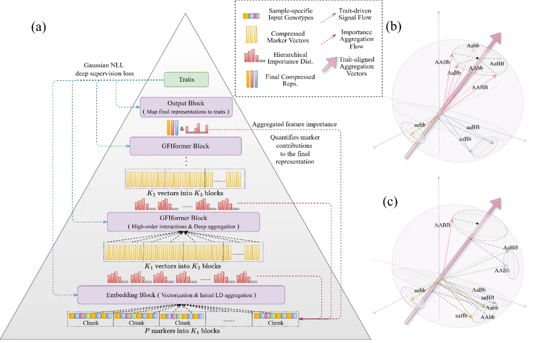 近日,山东农业大学机械电子工程学院刘平教授、生命科学学院李祥教授联合中国农业科学院果树研究所王海波研究员在《Plant Biotechnology Journal》上发表了题为“DNAwhisper: An Integrated Deep Learning Pyramidal Framework for Multi-Trait Genomic Prediction and Adaptive Marker Prioritisation”的研究论文,提出了可解释的深度学习全基因组选择计算方法,助力作物复杂表型的早期预测和复杂数量性状遗传效应挖掘。机电学院博士后马岳鑫为第一作者,刘平教授、李祥教授和王海波研究员为共同通讯作者。