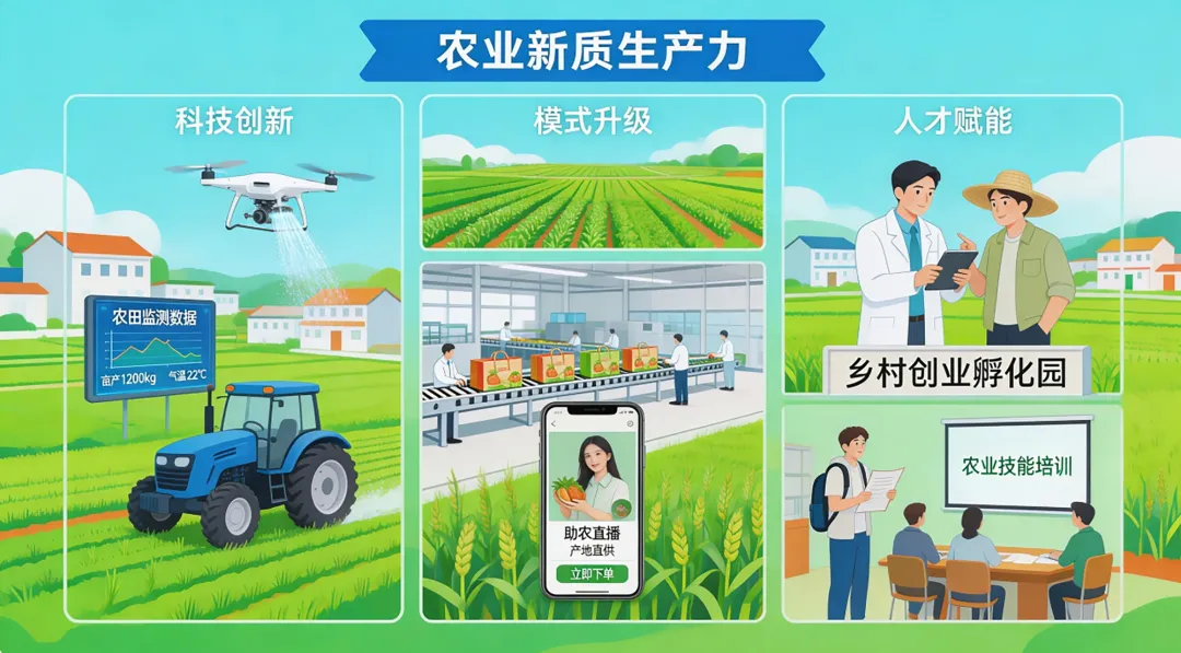 发展农业新质生产力是报告对乡村振兴战略的深化升级,其核心逻辑在于通过技术创新重构农业生产体系,摆脱对传统土地、劳动力要素的单一依赖,实现农业从 “保供给” 向 “提效能、增效益、促可持续” 的转型。从选育突破性品种到推广智能农机,从建设高标准农田到完善联农带农机制,一系列部署既聚焦当前粮食安全保障需求,更着眼于农业现代化的长远发展,为构建宜居宜业和美乡村注入持久动力。