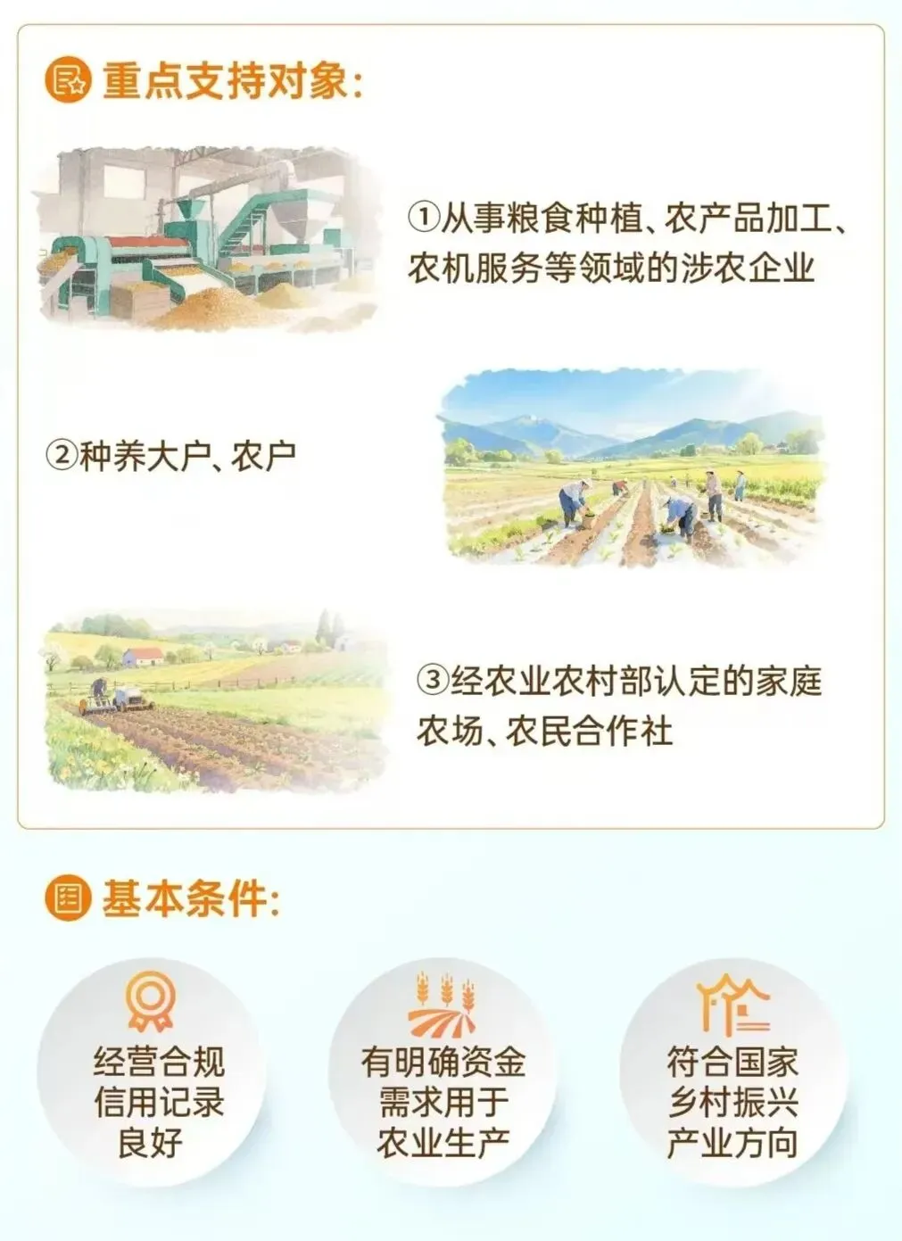 有信贷需求的家庭农场、农民合作社、种养大户、农业企业等农业经营主体。