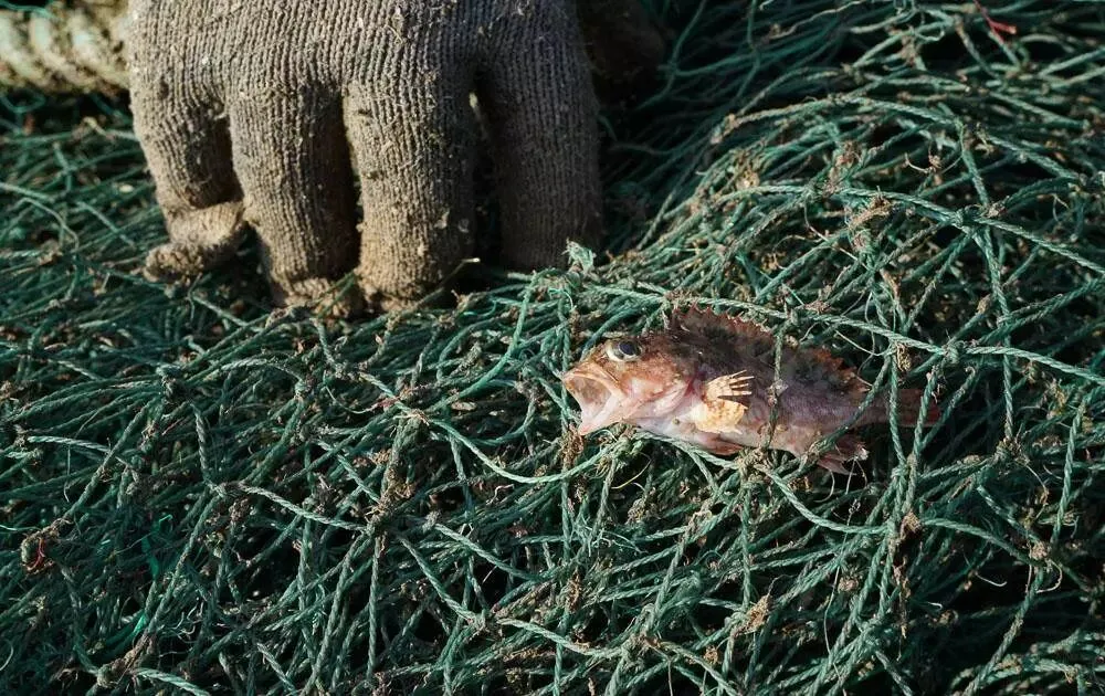 2016年12月17日,山东石岛,一条幼年褐菖鲉被卡在网里。褐菖鲉又名“假石斑鱼”,是近海常见的食用鱼类,肉质鲜嫩味美。重量2两以上的的褐菖鲉可以卖到30元/斤,而这条褐菖鲉用作饲料只能卖到最多1元1斤。