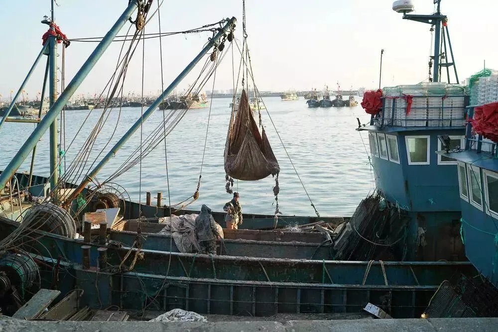 2016年12月16日,山东石岛,正在石岛码头卸货的鱼船。石岛隶属于山东省荣成市,因“背山靠海,遍地皆石”而得名,顾名思义,这里很难发展种植业。好在守着黄海,石岛发展出了渔业、船舶制造和水产交易等产业,中国北方最大的渔港就坐落在此。