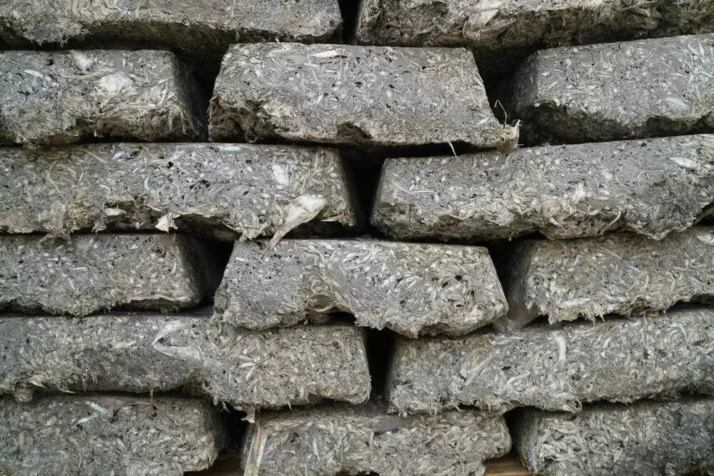 2016年12月15日,山东石岛的一家鱼粉厂的原料场里,堆放整齐、等待加工的饲料鱼鱼板。鱼粉在生产过程中会排放大量的废水废气。为了整顿市容,在过去几年,荣成开展了集中治理,关闭、合并了多家小工厂,并要求保留下来的工厂必须配备合规的排污设备。