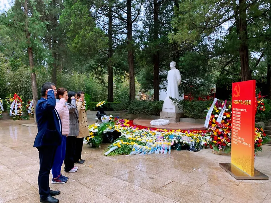 农行北京海淀支行组织党员代表来到李大钊烈士陵园,在主展室、纪念室认真参观学习,深入了解革命先辈李大钊同志为了党的事业光辉奋斗的一生,感受崇高的革命精神和伟大的人格力量,并向李大钊塑像敬献鲜花,重温入党誓词。