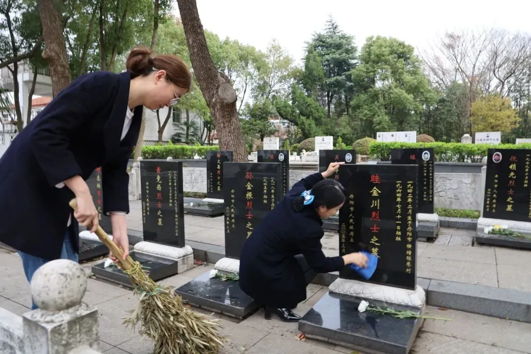 农行江苏丹阳支行组织青年党团员前往爱国主义教育基地丹阳革命陈列馆开展主题党日活动,青年党团员在展览室里认真聆听革命先烈们的英雄事迹,体会革命历程的艰苦卓绝,在陵园内清扫道路,擦拭烈士墓墓碑。
