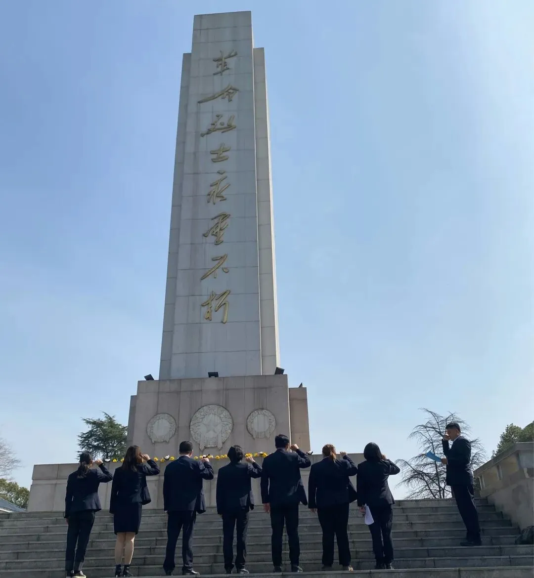农行上海金山支行组织员工前往金山区烈士陵园开展祭扫活动。在纪念碑前,大家手捧鲜花低头默哀,追忆革命先辈们的不朽功勋。