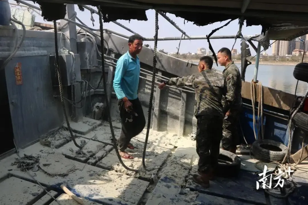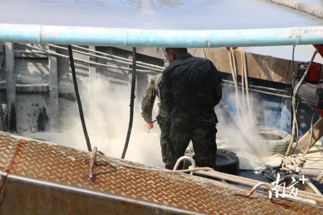 当时,正在操课的执法员接报后,第一时间领取消防器材集结,迅速赶赴码头。仅1分多钟后,16名执法员手持灭火器到达失火现场,对起火渔船实施灭火。最终,经过20多分钟努力,海警执法员成功帮助渔船扑灭火情,隔绝易燃物,反复对起火部位进行检查,彻底消除复燃的可能性。