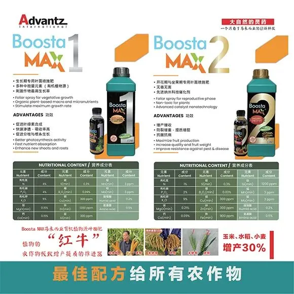 作为丰田农业旗下核心叶面肥产品,BoostaMAX1与BoostaMAX2凭借先进技术与显著功效,在市场中收获广泛认可。