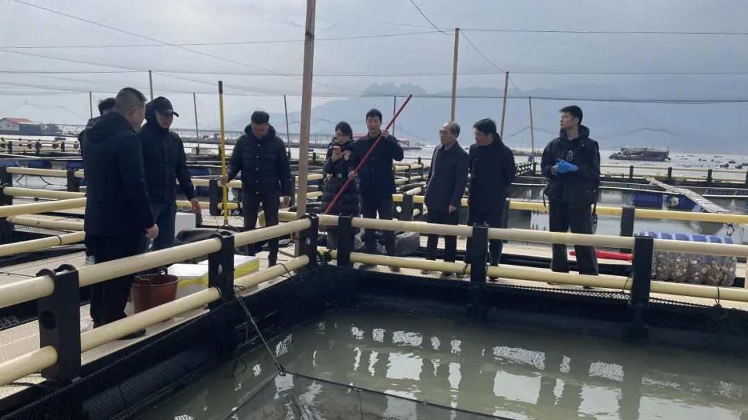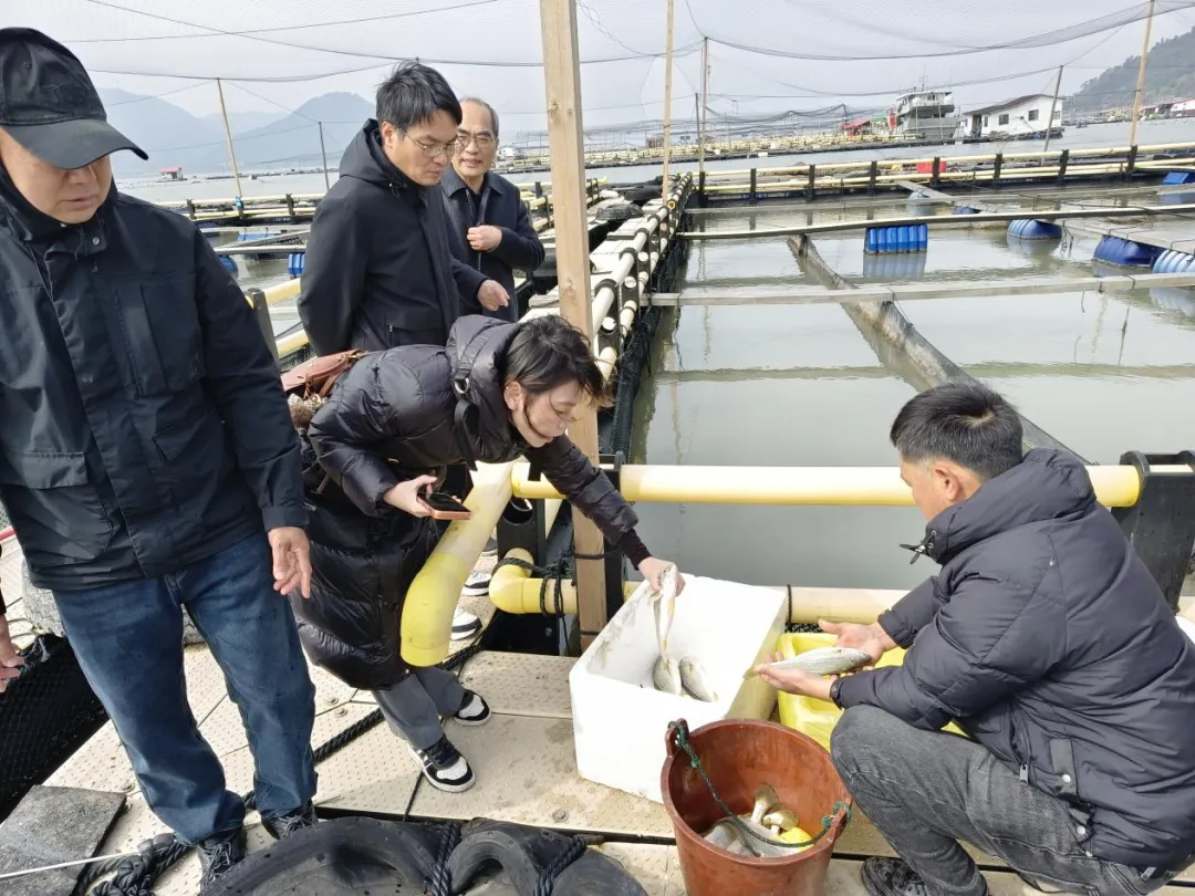 为加快推进蕉城区渔业绿色循环发展试点项目实施,强化大黄鱼产业全产业链标准化建设,3月7日,东海水产研究所宁德创新研究院郭全友研究员、福建省闽东水产研究所全汉锋研究员带领蕉城区水技站科技特派员陈庆荣、李安涵及宁德师院研究生,深入蕉城区大湾海域大黄鱼养殖品质提升标准化示范基地开展技术指导与调研工作。该示范基地隶属于东海水产研究所宁德创新研究院承担的蕉城区渔业绿色循环发展试点项目——“大黄鱼产业全产业链标准体系构建及示范项目”,是推动当地大黄鱼产业提质增效、践行绿色发展理念的重要载体。